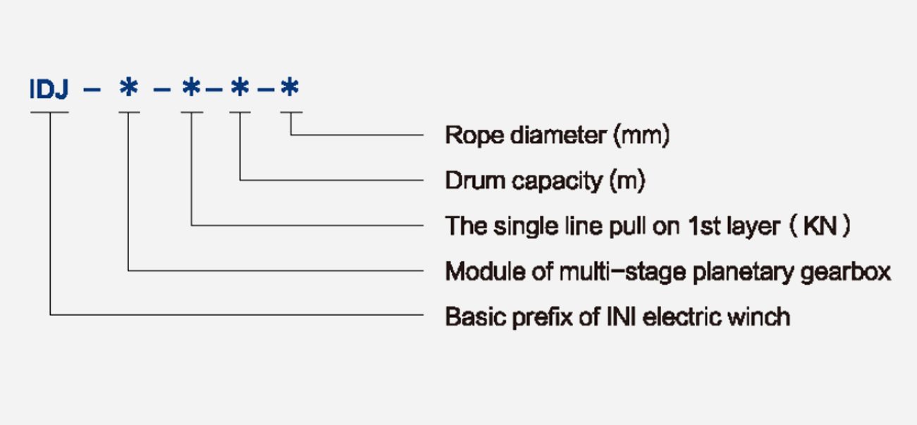 IDJ-seriens elektriske spil består af en elektromotor med bremse, planetgearkasse, tromle og ramme. Kun kunden